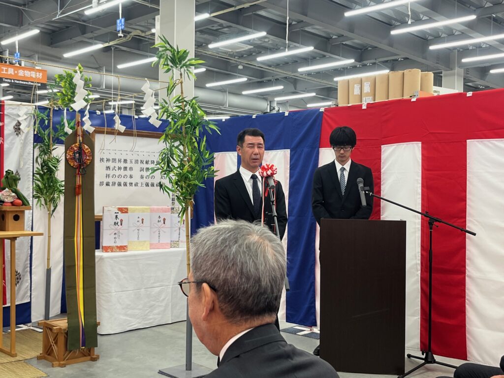 オープンに伴い、栄神社神主様、横手市役所様、㈱コメリ 代表取締役社長 捧 雄一郎様を初めとして